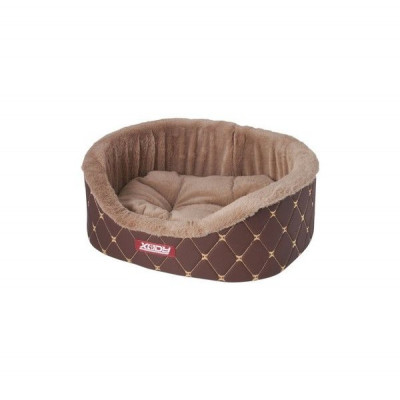 Лежак с бортиком из мебельного поролона и съемной подушкой, которая набита пушистым Холлофайбером. ЭкоКожа с отсрочкой коричневой нитью