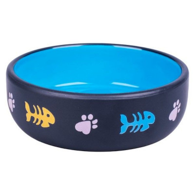 Керамическая миска для кошек с изображением рыбок и лапок. Объем 350 мл. Удобно использовать и легко мыть.