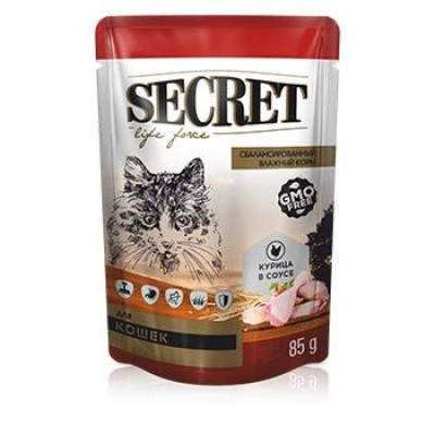 СЕКРЕТ ФО ПЕТС ЛАЙФ ФОРС ПАУЧ Д/КОШЕК КУСОЧКИ В СОУСЕ С КУРИЦЕЙ 85Г. (ВЕТ.) [SECRET FOR PETS LIFE FORCE]