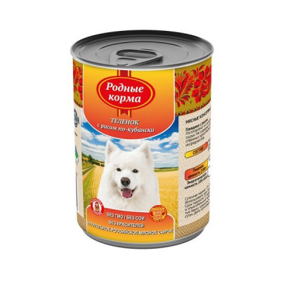 РОДНЫЕ КОРМА КОНСЕРВА Д/СОБАК ЕЛЕЦ ТЕЛЕНОК+РИС ПО-КУБАНСКИ 970Г. (ВЕТ.)
