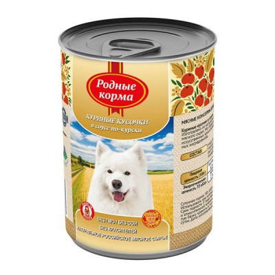 РОДНЫЕ КОРМА КОРМ ВЛАЖН. Д/СОБАК КУРИНЫЕ КУСОЧКИ В СОУСЕ ПО-КУРСКИ 970Г. Б/КРЫШКИ (ВЕТ.)